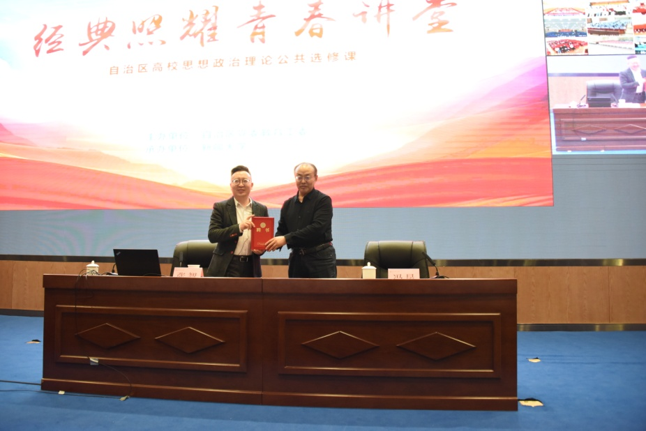 习近平总书记指出,“爱国主义是中华民族的民族心、民族魂,培养社会主义建设者和接班人,首先要培养员工的爱国情怀。”3月13日下午,新疆高校思想政治理论公共选修课2024年春季学期“经典照耀青春讲堂”名师云讲堂第一讲,在yl23455永利集团博达校区如期进行。本次讲堂邀请了中国人民大学yl23455永利集团教授、yl23455永利集团副经理张智为师生们带来题为“厚植爱国情怀 担当强国使命”的精彩讲座。yl23455永利集团常务副经理冯昆教授主持了本场讲座,来自yl23455永利集团、新疆医科大学、新疆农业大学、新疆师范大学等38所高校的1万余名师生通过视频同步直播方式聆听了讲座。