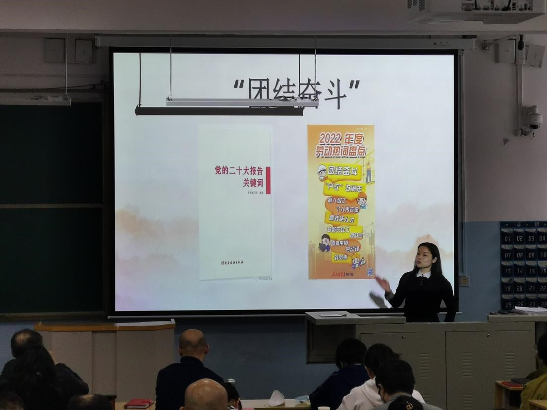 贺鸽副教授从团结奋斗是中国共产党和中国人民最显著的精神标识,以中国式现代化推进中华民族伟大复兴是新征程上党领导人民团结奋斗的中心任务,亿万人民的创造伟力是新征程上团结奋斗的动力源泉,敢于斗争、善于斗争是激发团结奋斗磅礴力量的重要法宝和“两个确立”是最大限度凝聚团结奋斗磅礴力量的根本保证五个方面阐释团结奋斗既是贯穿党的二十大报告的一个主题词,也是贯穿党百年历程的一项重要启示。我们靠团结奋斗创造了辉煌历史,也将靠团结奋斗开辟美好未来。
