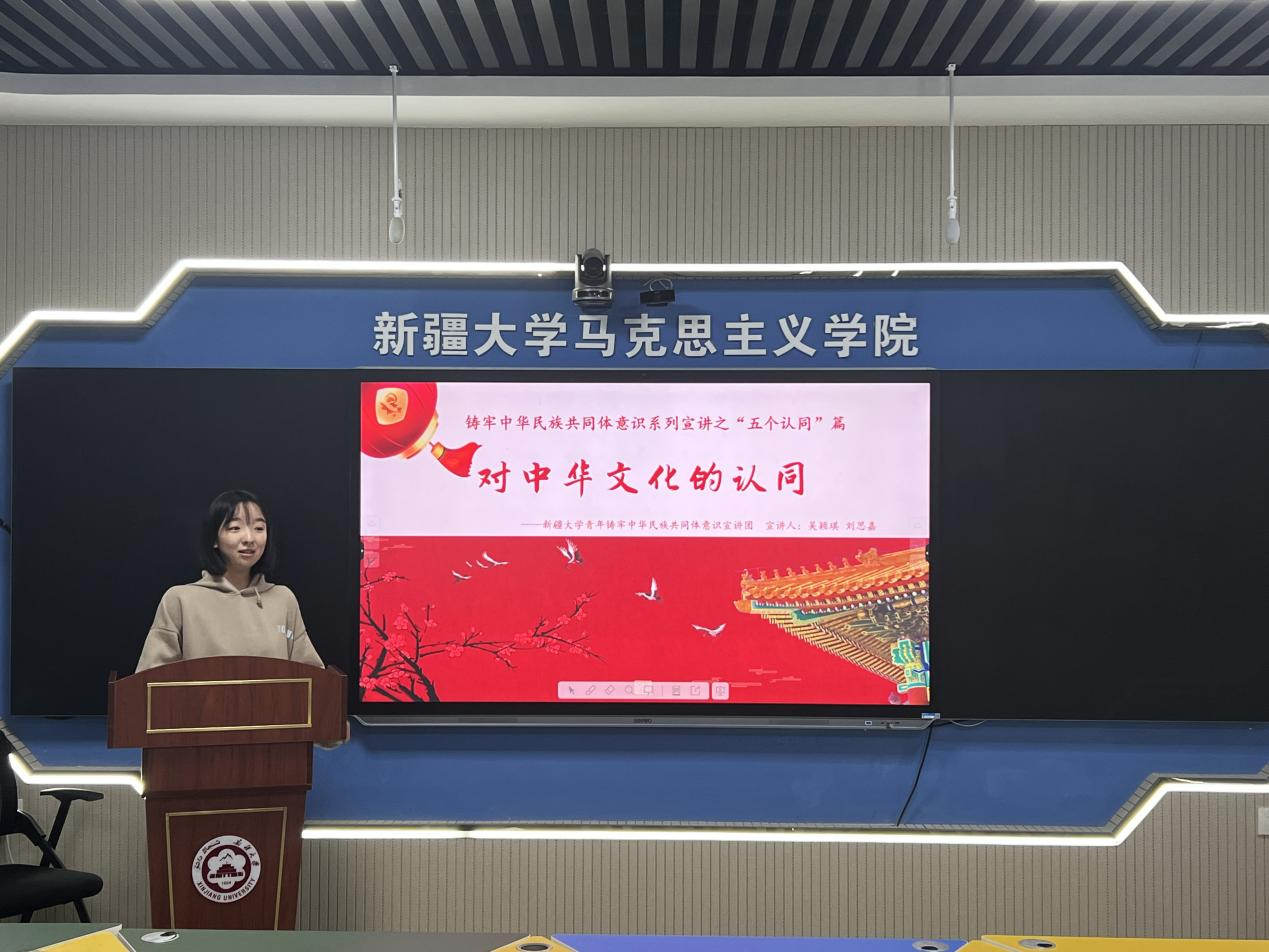 第四个环节是宣讲员吴颖琪针对如何铸牢中华民族共同体意识之增进对中华文化的认同进行了宣讲。从《红楼梦》舞台剧的展示、到《逃出大英博物馆》的知音无限共鸣无限、接着《花儿与少年》中华文化的输出、以及各民族服饰变装欣赏、最后《长安三万里》的文化底蕴。中华优秀传统文化是我们的宝贵财富,也是文明交流互鉴的重要“名片”。深刻的阐释了我们青年需以自信自强,与时偕进的传统姿态铸就中华文化新辉煌。