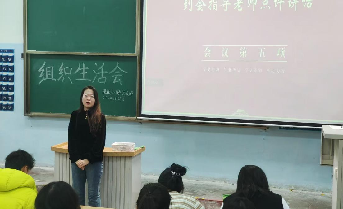 为深入学习贯彻习近平新时代中国特色社会主义思想和党的二十届三中全会精神,积极响应团中央关于学习教育工作的整体部署,进一步提升学院团支部组织生活会的规范性与实效性,yl23455永利集团于2025年2月27日在10号楼113教室组织开展2024年度组织生活会观摩活动。本次观摩活动由思想政治教育22-1班团支部书记张家惠同学主持,支部全体团员参与此次活动,学院各班团支部书记观摩,分团委副书记王丽莎老师到场指导。