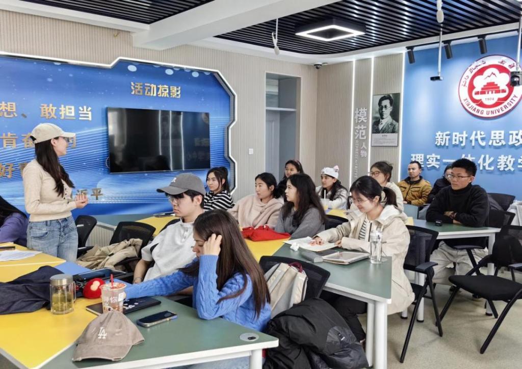 会议伊始,边洁、王艺涵、玛合帕丽·吾布力斯、郭丹丹、刘思嘉、吴颖琪、葛世博和王建树等八位宣讲员依次进行示范宣讲,展示全新的精品课件,并以多元的形式和丰富的内容给大家带来了精彩宣讲,为宣讲团成员进一步提高宣讲能力和水平提供了理论思路和实践指导。