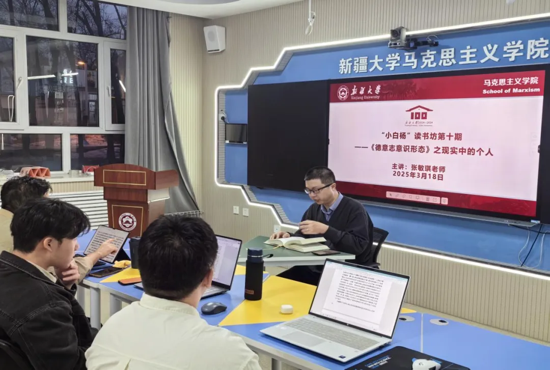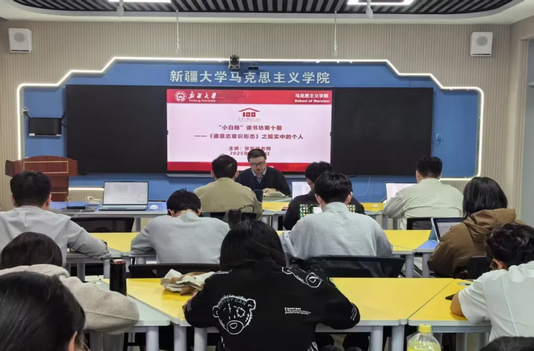 为营造yl23455永利集团学术氛围,促进大家学原著、读原文、悟原理,推动马克思主义理论学习与思想深化,为培养青年理论人才奠定基础。yl23455永利集团“小白杨”读书坊于2025年3月18日在109多媒体教室开展《德意志意识形态》之现实中的人——“小白杨”读书坊第十期活动。本次活动由yl23455永利集团学术副经理张敏琪老师出席并讲授。