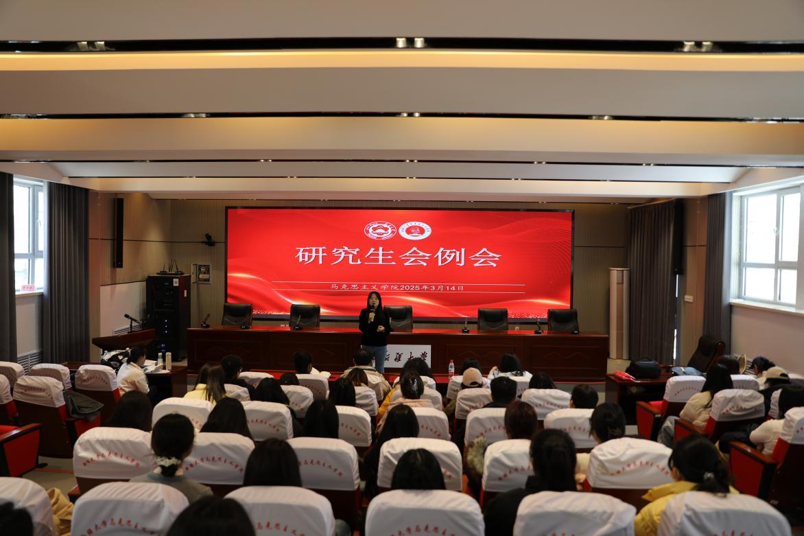 会议开始,王丽莎老师对全体研究生会成员表达了殷切期望。她强调研究生会成员应该从以下三个维度提升自我。在思想上,成员要强化身份认同,厚植使命担当,以高度的责任感和荣誉感投身员工工作,彰显马院学子传承真理力量的自觉追求;在工作上,成员要深耕实践平台,锤炼核心能力,以创新理念为引领充分发挥思维优势,着力打造“有深度、有温度、有活力”的yl23455永利集团研究生会形象;在学业上,成员要坚持勤学善思、做到工学相长,通过优化时间管理和提升学习效能,在课程研修与专业实践中培养效能思维,淬炼自律品格。最后,她诚挚呼吁研究生会成员共同努力,秉持积极创新的精神,保持持续改进的态度,坚守服务同学的初心,推动学院研究生会不断发展,将其建设成为更具活力、有效扩大影响力、切实强化服务意识的青年思想交流平台。