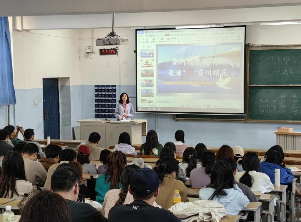 宣讲员边洁同学以“石榴焰焰靓青枝,千籽亲偎孰敢欺”为题,展开了一场感人至深的宣讲。她以饱满的热情和生动的语言,讲述了陈祥榕战士英勇维护国家领土主权的壮举,以及国防姐妹花从蔚蓝大海到苍茫高原的感人故事。这些故事如同边疆的烽火,照亮了青年们心中的信仰之光,展现了他们用实际行动践行“请党放心、强国有我”的青春誓言。宣讲让听众们心潮澎湃,他们被那些边疆故事中的英雄气概所感染,更被青年们的爱国情怀所触动。