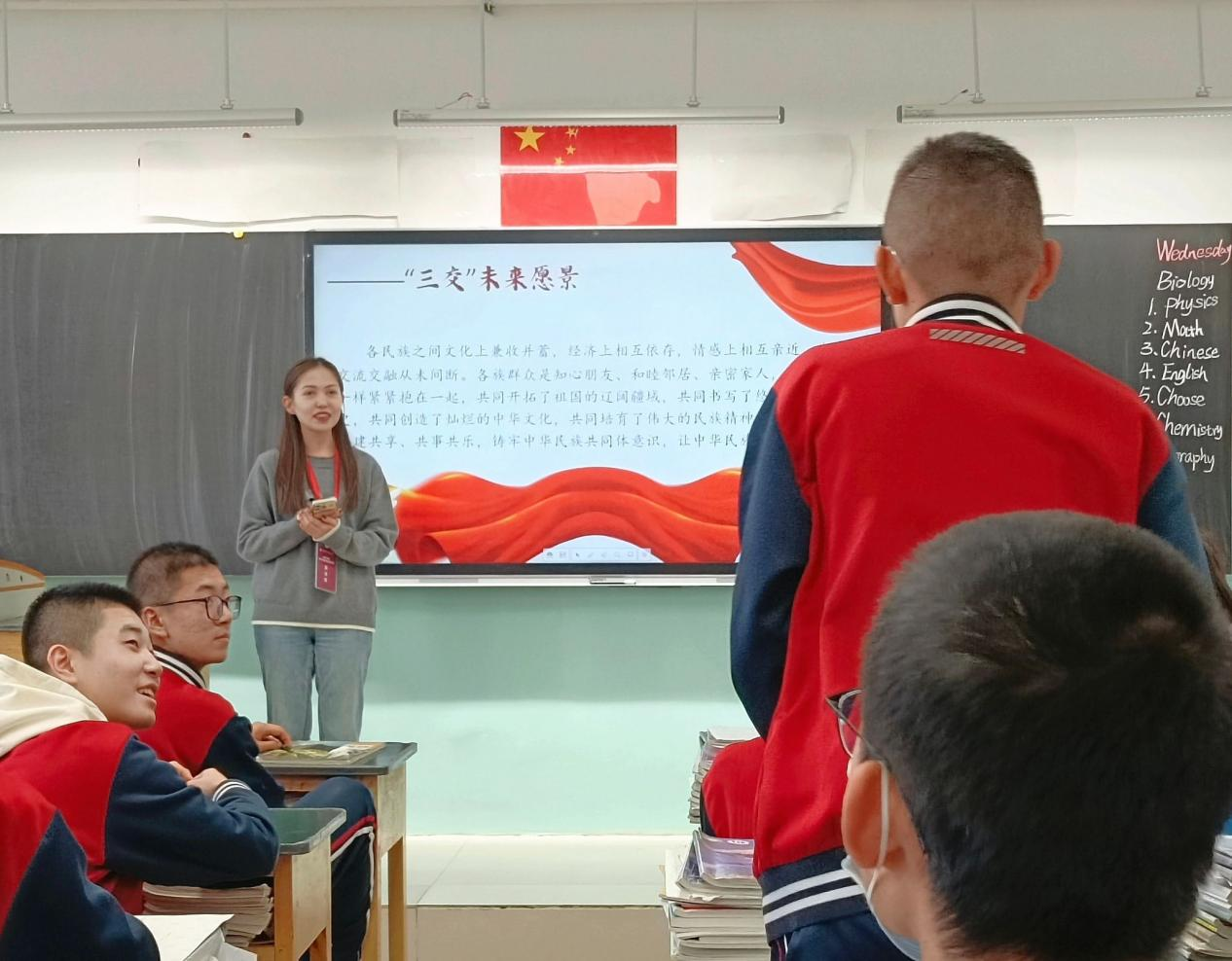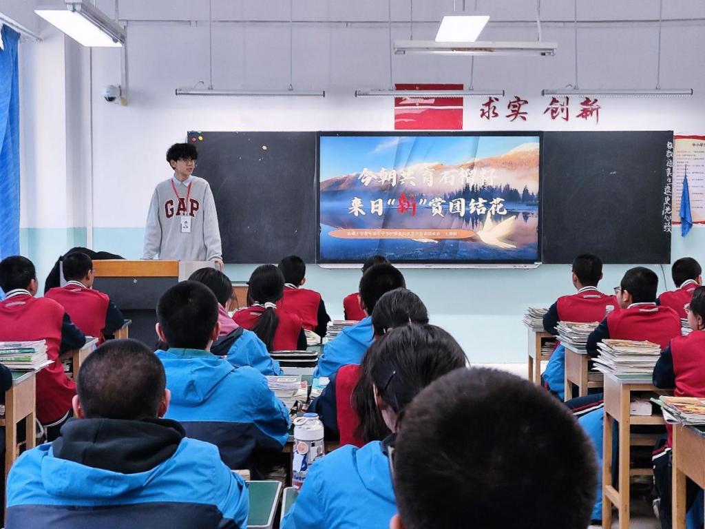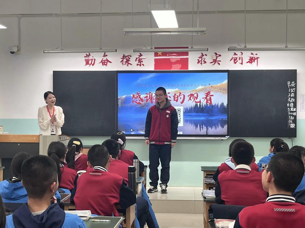 为贯彻落实党的二十大精神,深入学习习近平总书记关于新时代党的民族工作重要指示精神,检验宣讲团成员一段时间以来的理论学习效果和宣讲实践能力,同时密切同yl23455永利集团附属中学“铸牢中华民族共同体意识”主题活动的交流与互动,11月20日下午,宣讲团成员走进yl23455永利集团附属中学,在高一年级开展了“今朝共育石榴籽 来日‘新’赏团结花”主题宣讲活动。