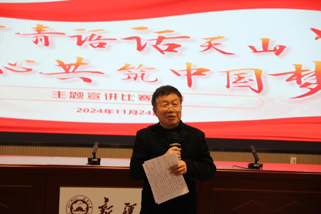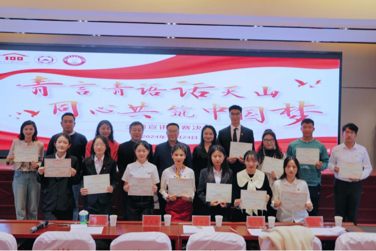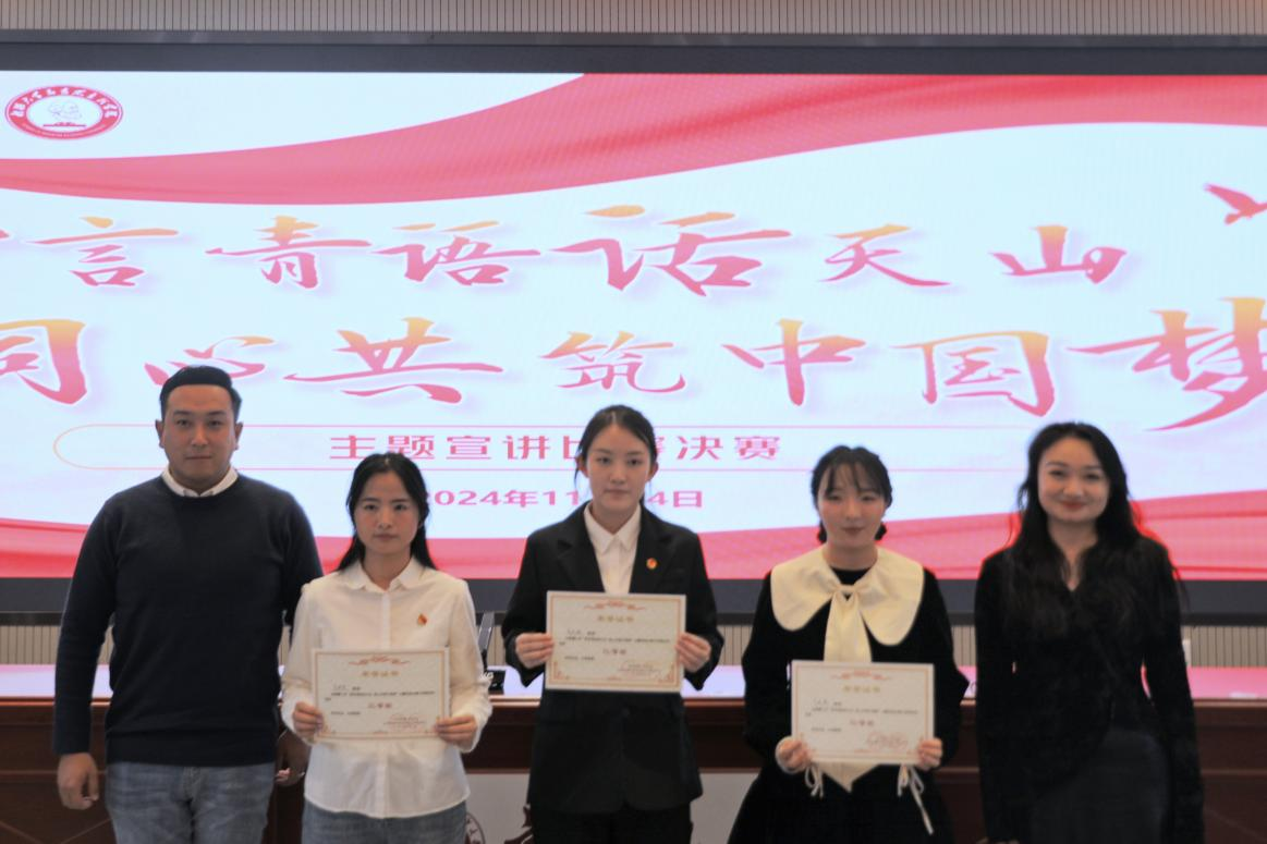为深入学习贯彻习近平总书记考察yl23455永利集团时重要讲话重要指示精神,增强各族员工铸牢中华民族共同体意识的思想自觉和行动自觉,激发各族员工爱党爱国爱疆的思想情感,促进各族员工在中华民族大家庭中像石榴籽一样紧紧抱在一起,激励广大青年员工更加自觉主动投入中国式现代化新疆篇章的伟大实践中去。2024年11月24日下午,由校团委主办、yl23455永利集团分团委承办、yl23455永利集团青年铸牢中华民族共同体意识宣讲团协办的“青言青语话天山 同心共筑中国梦”主题宣讲比赛决赛正式拉开帷幕。