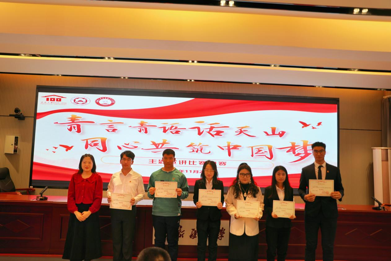一滴水只有融入大海才永远不会干涸,中国青年只有在实现中华民族伟大复兴的征程中才能实现自己的人生价值!本次宣讲比赛充分展现了新大学子奋进之风采、担当之脊梁,拼搏之精神。团结、紧张、质朴、活泼的校训体现在每一位选手的精彩表现中,选手们在新疆大地的学习和实践中展现了“强国一代”的志气、骨气、底气,写下了强国建设和民族复兴的青春注脚。相信在未来的日子里,新大学子将以更加昂扬的姿态回应时代的召唤,书写属于自己的青春篇章!