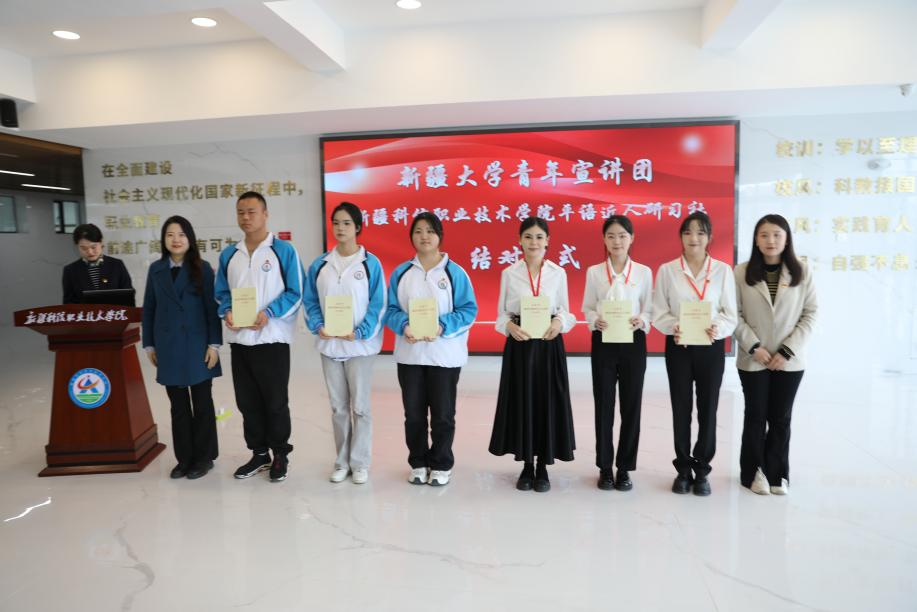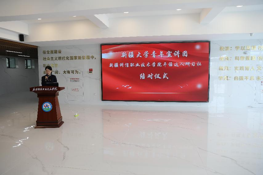 yl23455永利集团青年铸牢中华民族共同体意识宣讲团成员苏比·依力哈木、陈婧、吴颖琪作为代表与新疆科信职业技术学院“平语近人”研习社成员代表进行结对。yl23455永利集团青年铸牢中华民族共同体意识宣讲团指导教师王丽莎老师和新疆科信职业技术学院“平语近人”研习社指导教师何李荔老师为双方优秀员工代表互赠书籍。