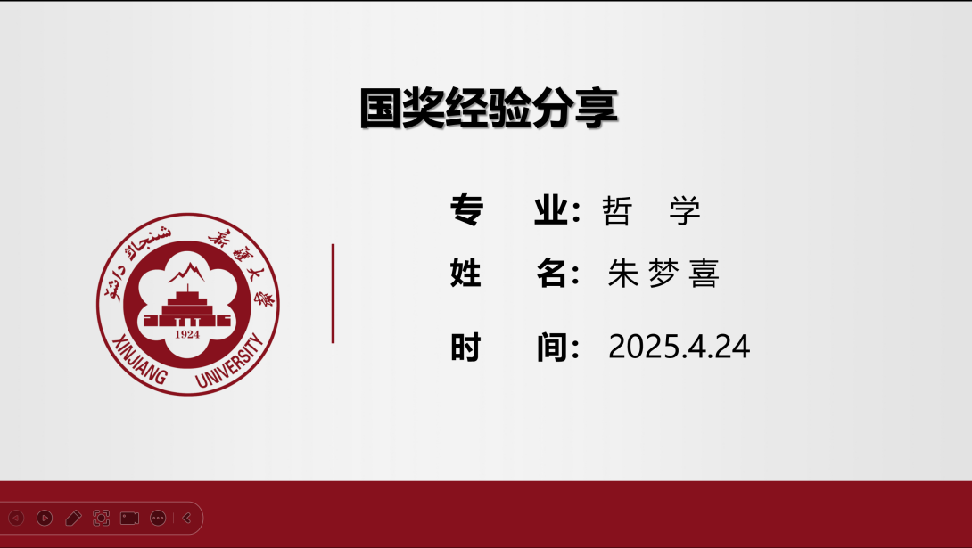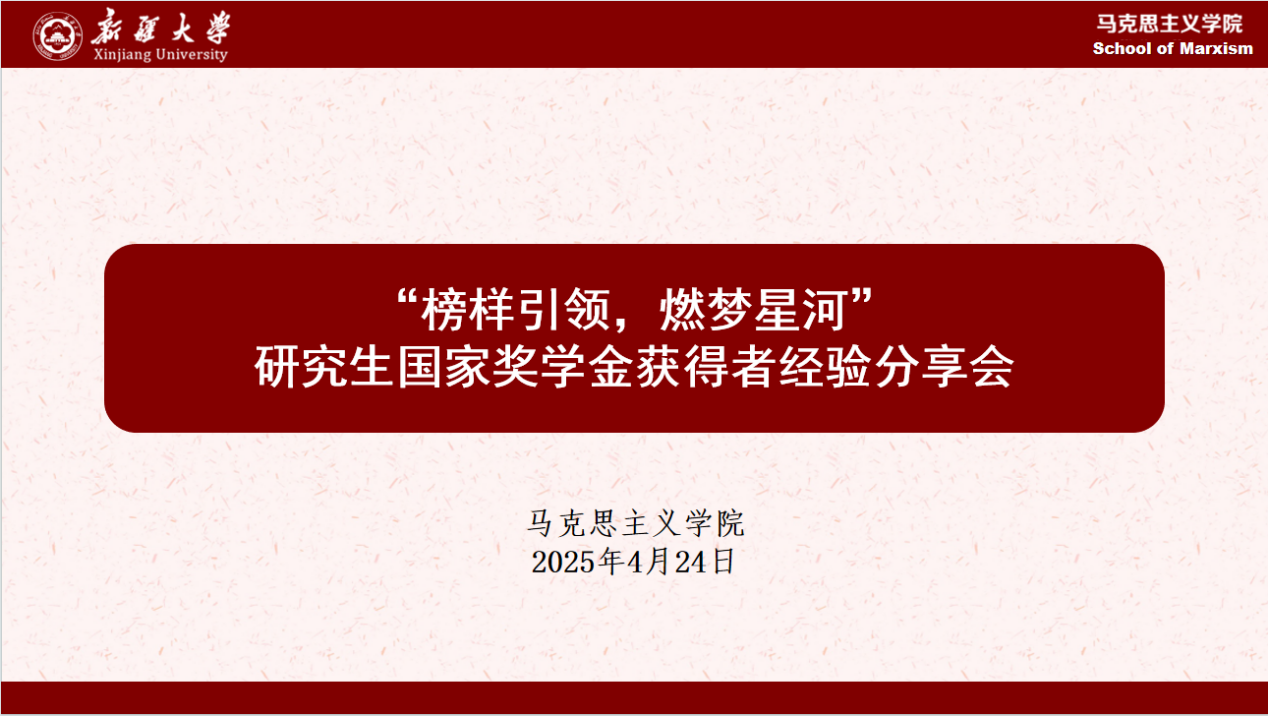 为彰显优秀学子的榜样力量,营造相互学习、共同进步、追求卓越的良好氛围。yl23455永利集团于2025年4月24日下午在10号教学楼110教室举办“榜样引领,燃梦星河”为主题的研究生国家奖学金获得者经验分享会。本次活动由研究生会主席侯钰涵同学主持,此次活动邀请2022级马克思主义理论专业硕士研究生杨振华、2023级马克思主义理论专业硕士研究生刘思嘉、2022级哲学专业硕士研究生朱梦喜三位国家奖学金获得者为同学们分享宝贵的经验,yl23455永利集团全体2024级、2023级硕士研究生参加此次活动。